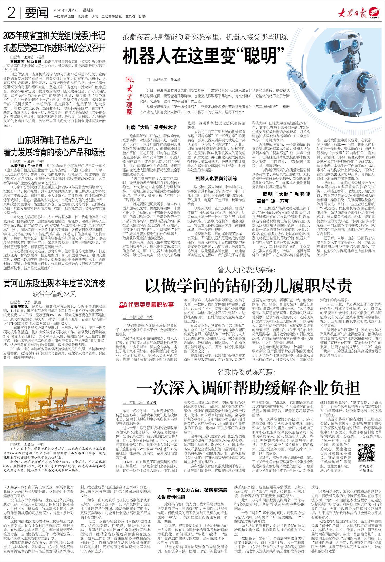 据了解,今年,山东一方面将加快培育机器人本体龙头企业,另一方面谋划建设省级具身智能综合训练场,市级、企业级的训练场建设也有望获得相关支持。