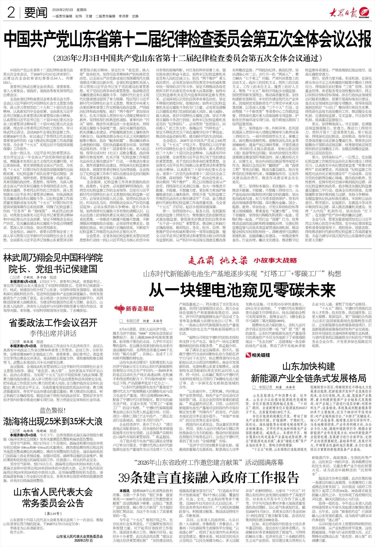“十五五”期间,宁德时代将依托自身人才优势、技术优势、供应链优势,以更大规模、更深层次、更广领域的合作助力山东打造国家能源绿色低碳转型示范区。立足新能源电池和装备制造项目,打造新能源高端装备的研发和产业化高地,加快布局绿色交通网络和零碳生态构建,与省内更多的以碳减排为目标的生产性服务业企业合作,开发更多绿色低碳应用场景。