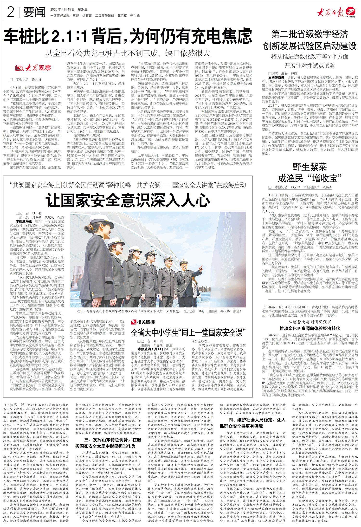 本报威海4月14日讯 为深入贯彻总体国家安全观,持续推进国家安全教育“进校园、进课堂、进头脑”,充分展现全省大中小学生国家安全素养,今天,全省教育系统“同上一堂国家安全课”活动在威海职业学院举行。全省145所大中小学校代表队及相关领域专家300余人齐聚现场,通过主题演讲、情景剧展演等形式,铭记历史沧桑、感悟苦难辉煌,演绎震撼人心的安全故事,以青春姿态诠释新时代青少年的国家安全担当。