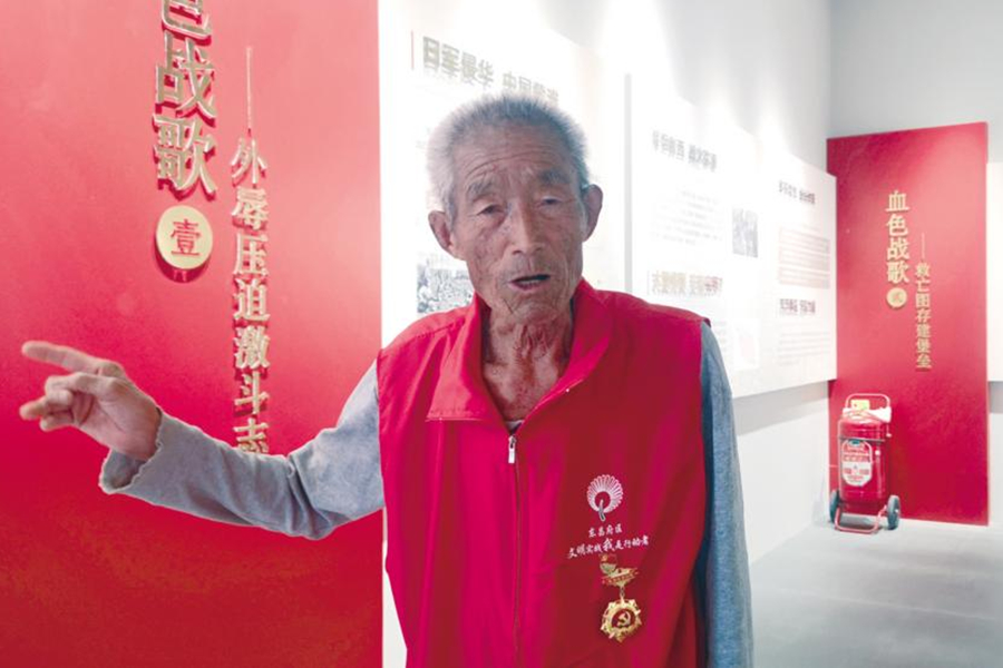 伴随着老人平静而沉重的话语,展馆内一张张图文并茂的展板、展台上黝黑的炮筒等物品,瞬间带人走进了80年前那场英勇悲壮的战斗。