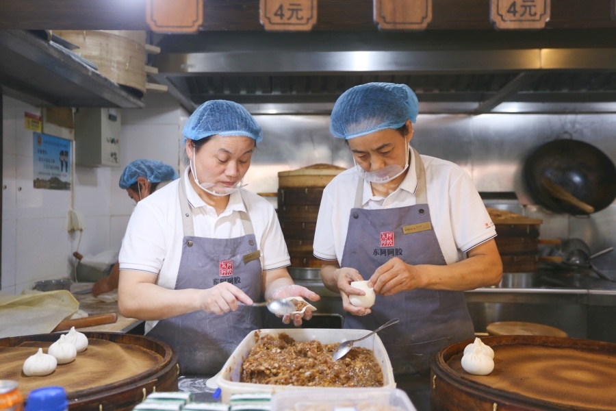 坐在明亮整洁的餐厅里,年近六旬的环卫工人董英感慨道:“他们待我们像家人一样,从未因为我们的职业而怠慢我们。”她从事环卫工作近二十年,每天清扫完街道,到店里歇歇脚、喝杯热水、尝一碗姜枣茶,已成为她最期待的时刻。“你看这包子,里面是驴肉丸,吃着特别香。老板和员工,都像这驴肉包一样实在。”董英笑着说。