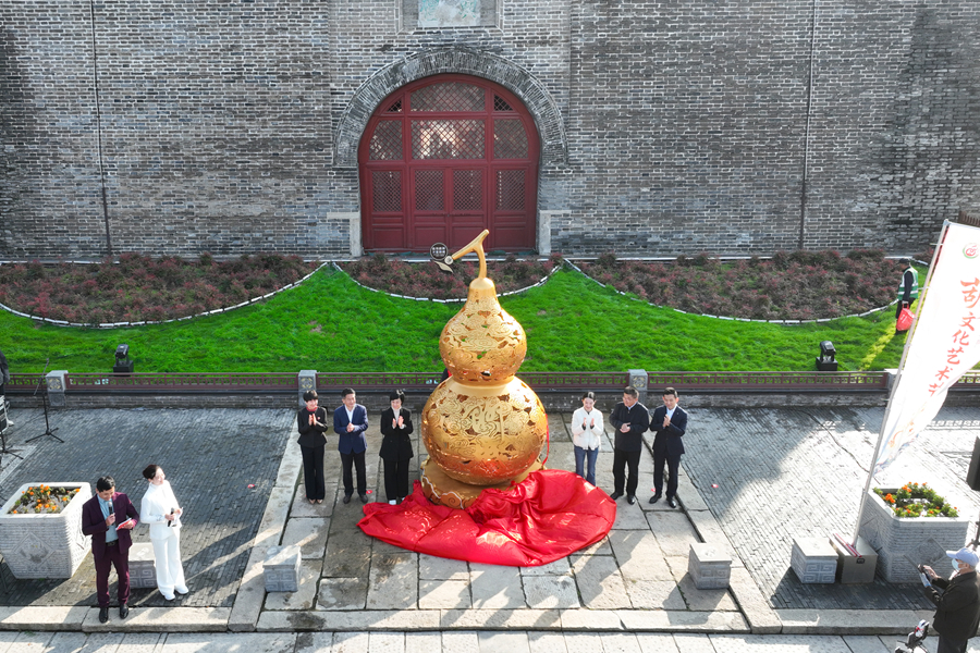 在让聚合平台从“功能整合”迈向“价值深化”的过程中,极具地域文化标识度的载体建设成为关键纽带。“光岳福禄”葫芦雕塑的落成,成为这场升级的关键一步。这尊以光岳楼顶铸铁葫芦为原型,镶嵌荷花、锦鲤、灵芝、麦穗等聊城元素的雕塑,将“光岳”的地域标识与“福禄”的吉祥寓意深度绑定。“它让游客带走的不只是一件葫芦制品,更是一份源自聊城的文化祝福。”聊城市文化和旅游局党组书记、局长周江涛表示,如今,“光岳福禄”已延伸至高端文创、城市景观、研学课程等领域,推动聊城葫芦从“有产品”向“有品牌”“有文化内核”跨越。