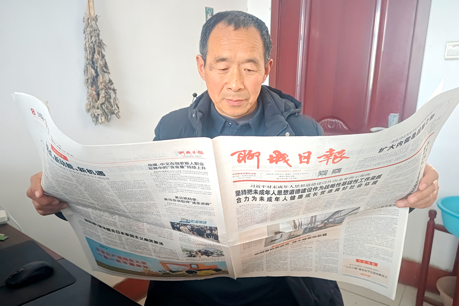 郭洪广在阅读《聊城日报》