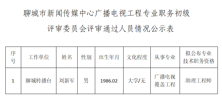 附件:聊城市新闻传媒中心广播电视工程专业职务初级评审委员会评审通过人员情况公示表