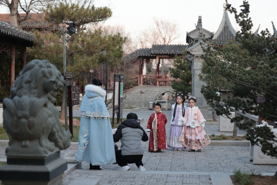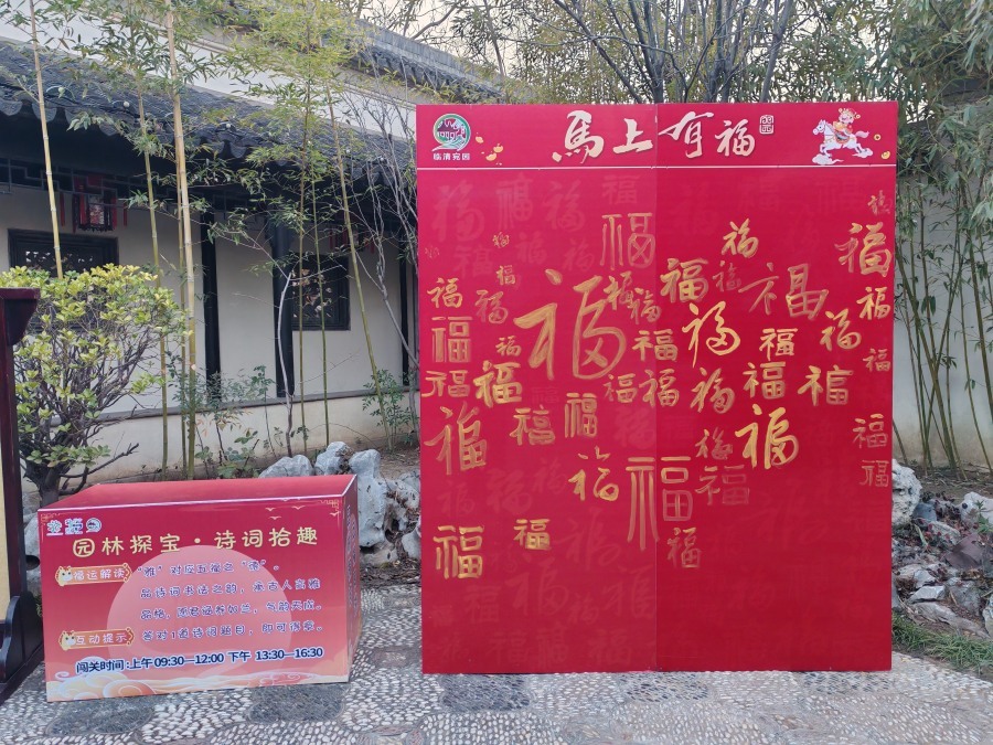 宛园推出了丰富多彩的活动,游客凭当日门票即可免费体验汉服,并可在百福墙上执笔写下开年第一份期许。同时,景区还特别推出“园林探宝·五福同游”集章打卡活动,让游客漫步园林寻觅福章,在趣味互动中积攒好运,共同感受这份独特的节日氛围。