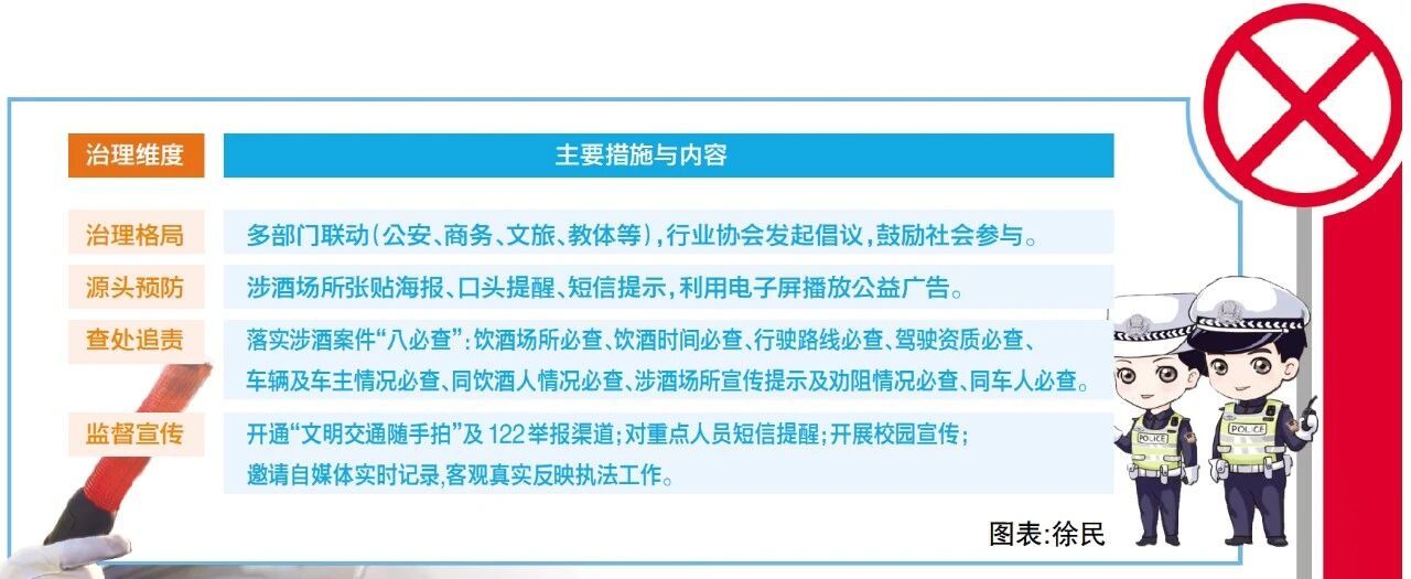 《实施意见》指出,加强酒驾醉驾全链条治理,强化部门协同,公安、商务、文旅、教体、交通、应急等部门将建立常态化联动机制,定期研判交通安全形势。