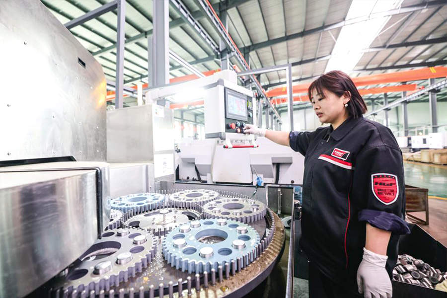 工作人员在轴承生产车间劳作