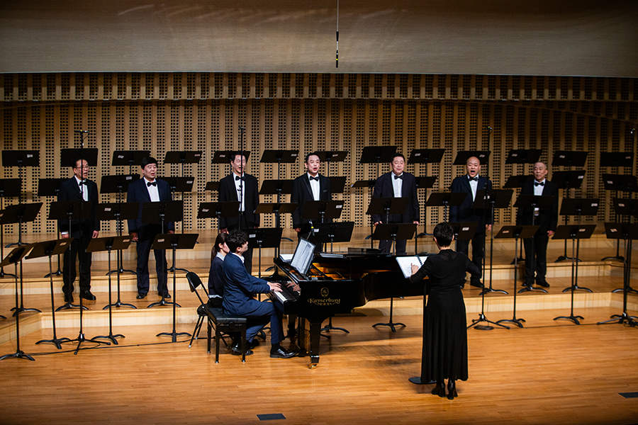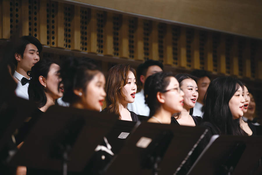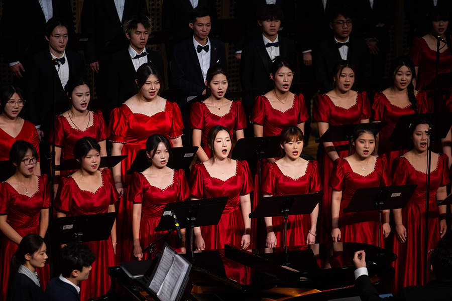 返场环节,聊城大学东昌学院“赋格”合唱团再次登台,带来《想见你想见你想见你》《海阔天空》《恋爱ing》等经典曲目。合唱音乐会最后,台上所有演员和台下所有观众在《新年好》的动听节奏中,以音乐告别过往、用旋律开启新篇,照亮2026年的前行道路。