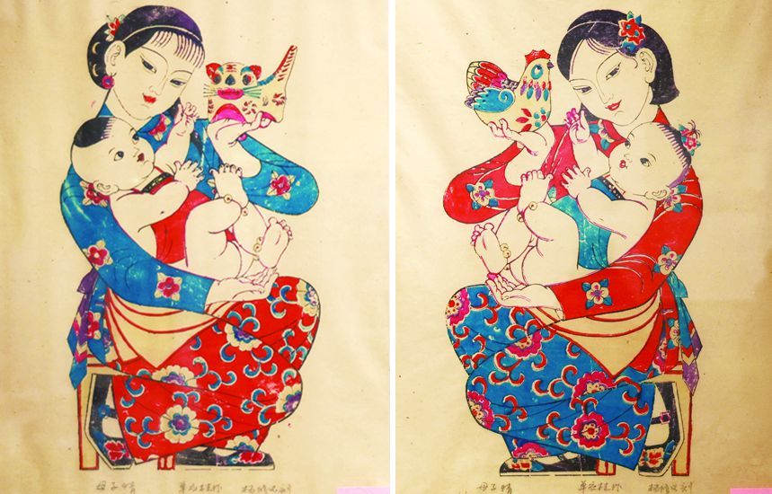 木版年画《母子情》