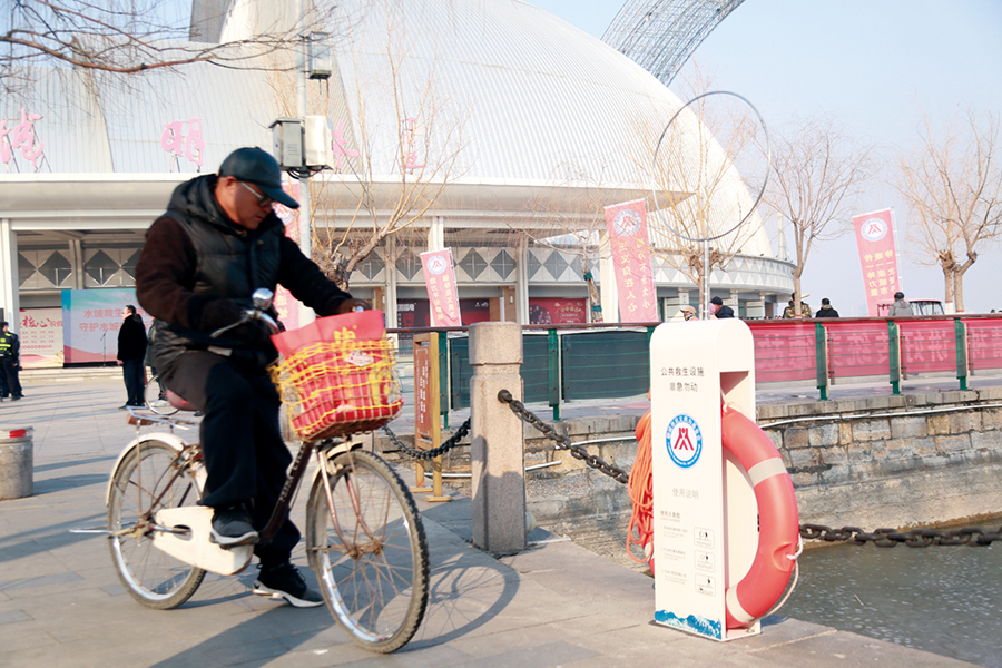 1月23日下午,聊城市见义勇为基金会在水城明珠大剧场附近举行水域救生设备投放交接暨“守护水城安澜行动”启动仪式,为首批276套救生设备正式“上岗”揭幕。