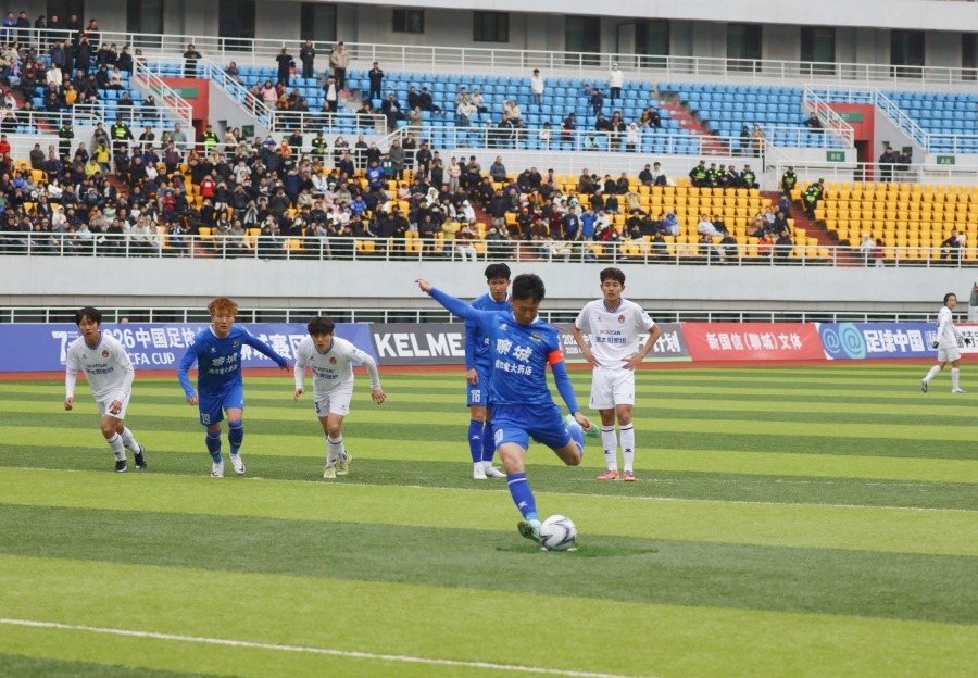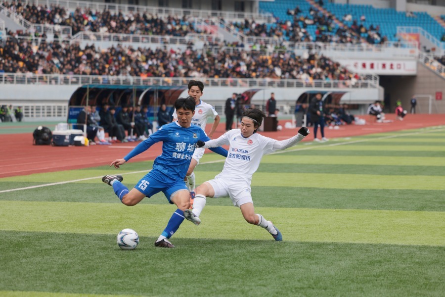 3月15日下午,2026中国足协杯第一轮(聊城赛区)在聊城市体育公园足球场打响,聊城传奇队主场对阵南通家纺城队。经过90分钟激烈较量,聊城传奇队以1比0战胜对手,顺利晋级第二轮。
