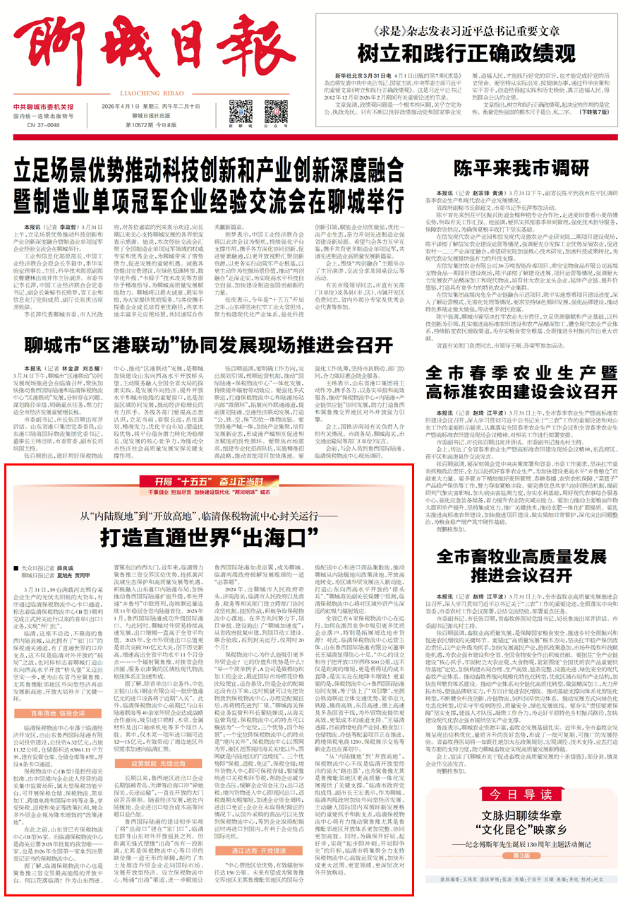 临清,这座不沿边、不靠海的鲁西内陆县城,从此拥有了“家门口”的保税通关通道,有了直通世界的口岸支点。这不仅是临清对外开放的“破局”之战,也标志着聊城打造山东向西高水平开放桥头堡又迈出坚实一步,更为山东省乃至冀鲁豫,特别是鲁豫毗邻地区外向型经济再添发展新高地、开放大局补齐了关键一环。
