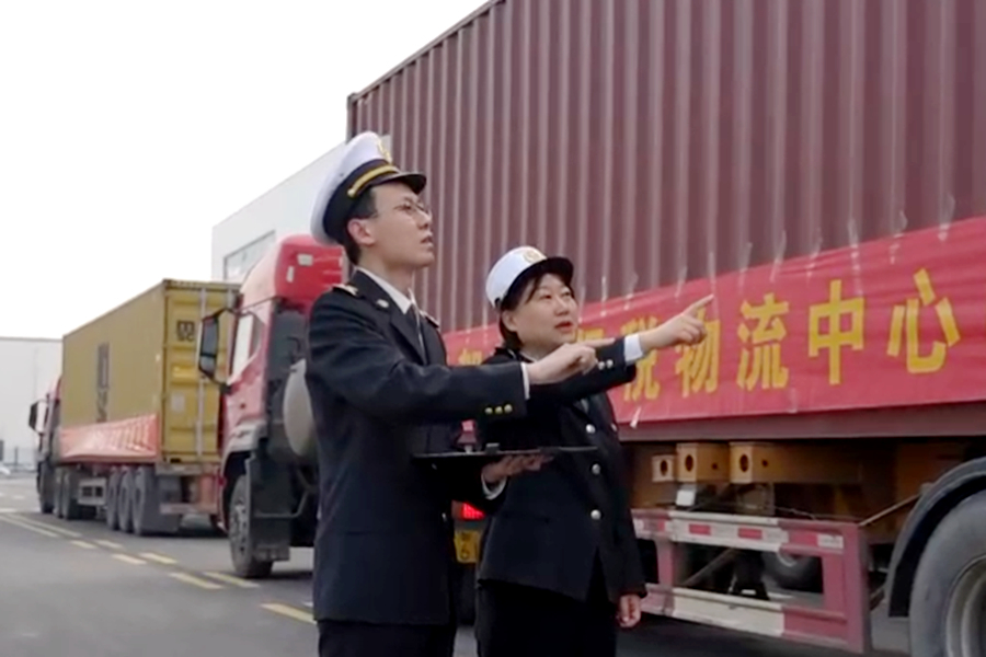海关工作人员在清点车辆