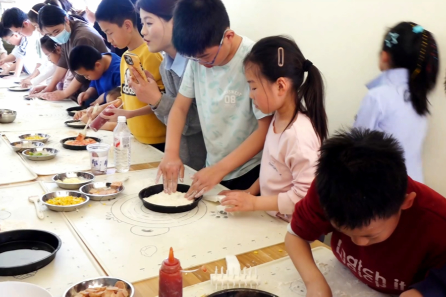 小朋友在制作披萨。岳强 摄