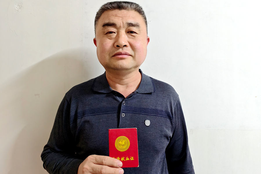 今年57岁的郝纯胜,与无偿献血的缘分始于2002年夏天。他在东昌湖游玩时主动登上采血车,成功捐献200毫升全血。这是他首次献血,也开启了一段二十余载的爱心之路。
