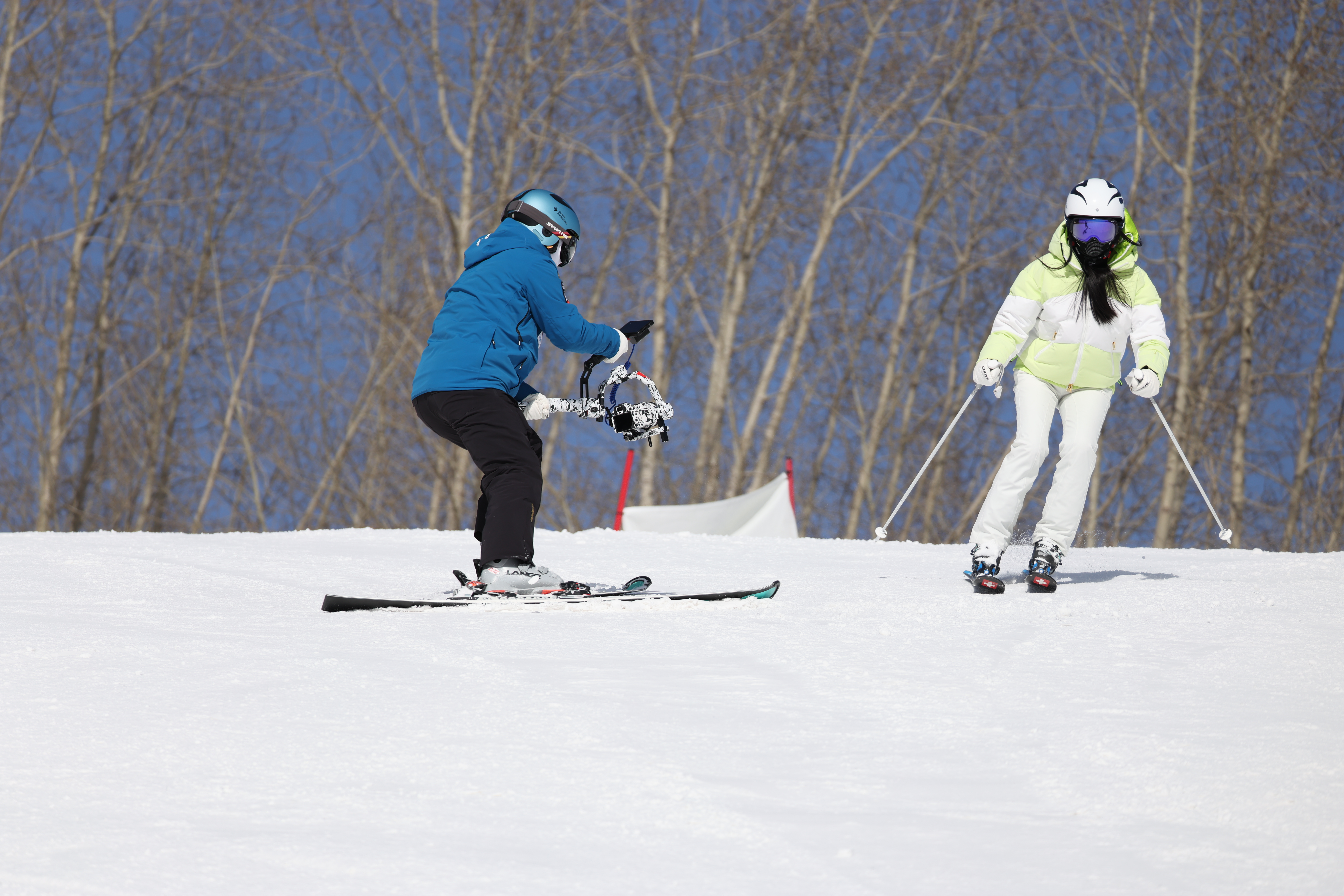 摄影师曲晓彤在跟拍滑雪爱好者。(受访者供图)