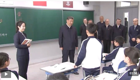 初一(2)班,一堂语文课正在进行中。习近平总书记走进这间教室,同师生交谈,了解教学情况。