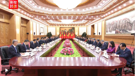 习近平指出,你当选越南国家主席后第一时间到访中国,体现了你对发展中越关系的高度重视。无论国际形势如何变化,中方始终将越南作为周边外交优先方向,愿同越方秉持初心、赓续友谊,团结协作、相互支持,高质量推进全面战略合作,加快构建更高水平具有战略意义的中越命运共同体。